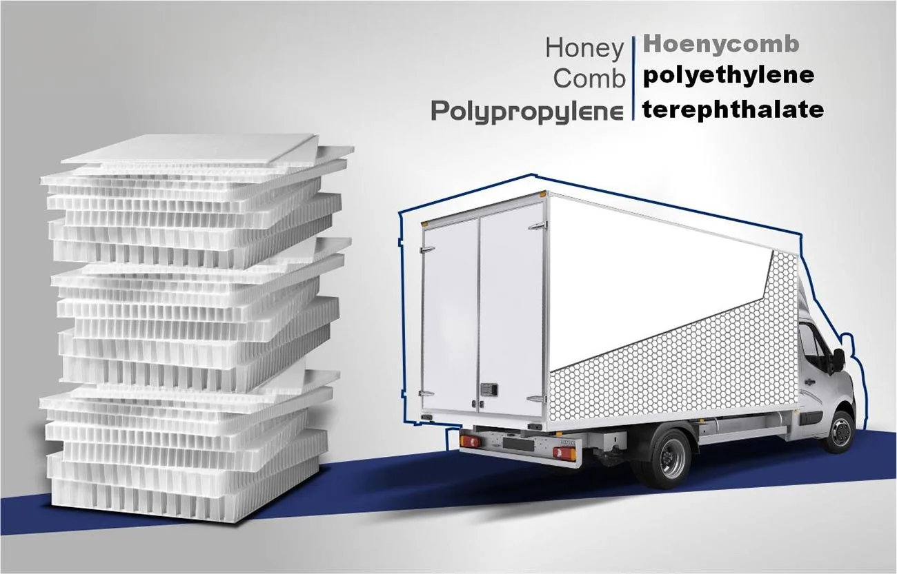 La carrozzeria per camion a secco con nucleo a nido d'ape è una soluzione logistica avanzata che sostituisce le tradizionali pareti in acciaio ondulato con struttura composita sandwich ad alte prestazioni (Skin Sheet + Honeycomb Core + Skin Sheet).