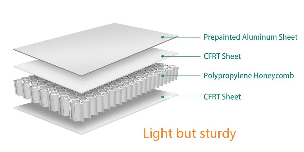 ● A nido d'ape in PP (polipropilene).: Il cavallo di battaglia conveniente. Leggero e altamente resistente agli agenti chimici e all'acqua, PP i nuclei sono ottimizzati per il carico secco standard in cui l'efficienza del budget e la protezione affidabile sono le massime priorità.